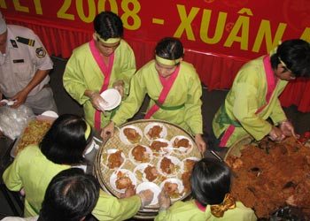 Sau đó, bánh được cắt ra hơn 50.000 phần mời mọi người thưởng thức.